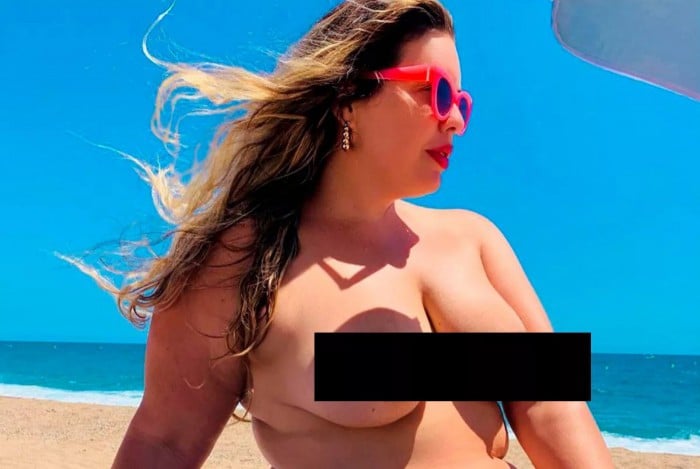 Modelo plus size Fluvia Lacerda faz topless em praia espanholaReprodução / Instagram