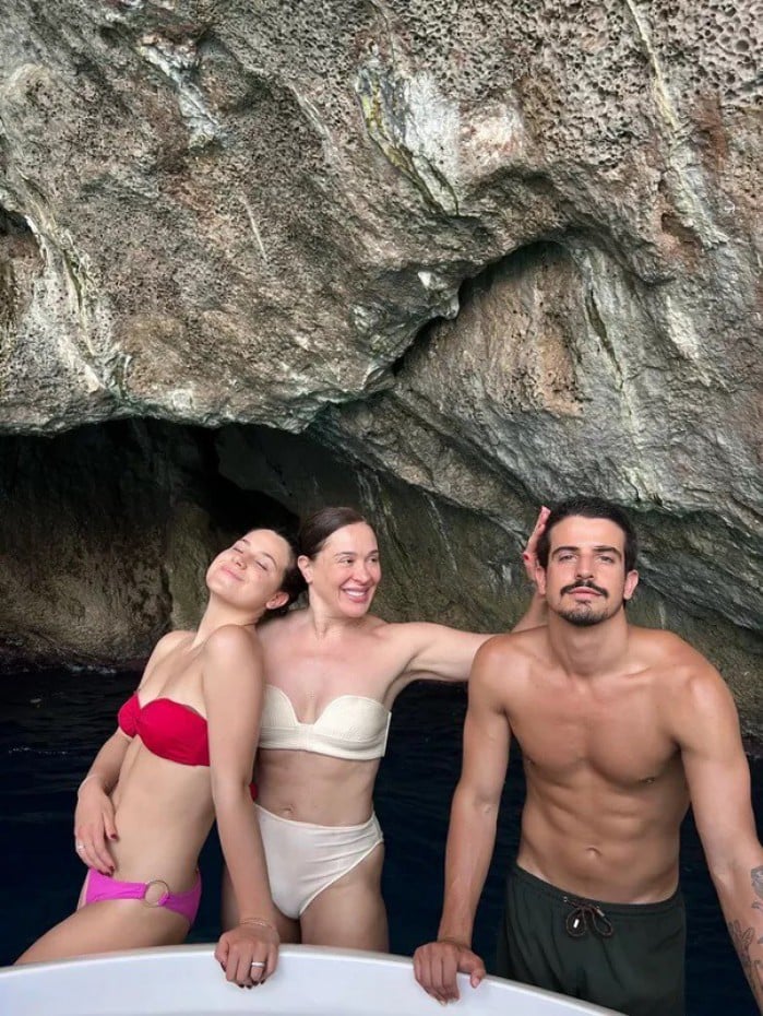 Claudia Raia aproveita banho de mar com filhos, Sophia Raia e Enzo Celulari, em Capri