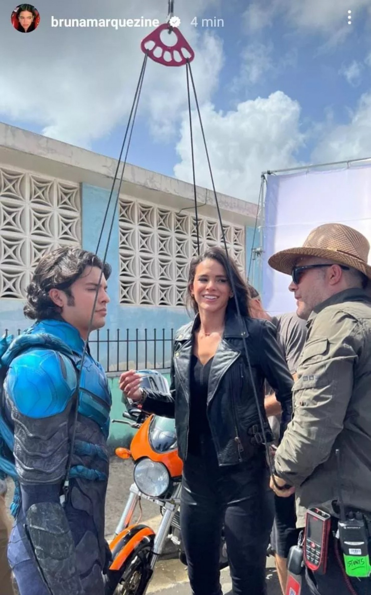 Rio - Bruna Marquezine mostrou uma foto dos bastidores da gravação do filme 'Besouro Azul' através do Instagram Stories. Na imagem, ela, que interpreta Penny, aparece com um look todo preto ao lado de Xolo Maridueña, protagonista do longa. No entanto, logo depois, a atriz apagou o registro.