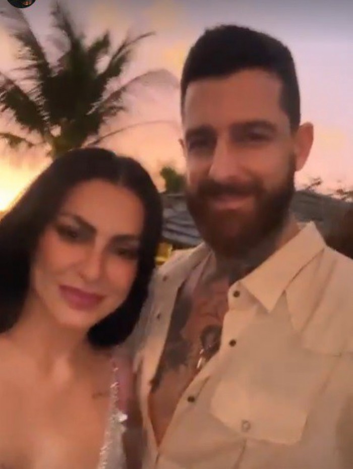 Cleo Pires e o marido, Leandro, no casamento de Lais RibeiroReprodução do Instagram