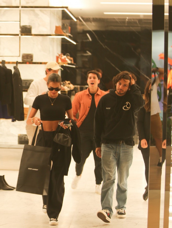 Rio - Bruna Marquezine tirou a tarde desta quarta-feira para passear em um shopping de luxo localizado na Barra da Tijuca, Zona Oeste do Rio. Combinando uma blusa cropped e calça na cor preta, a atriz fez compras acompanhada por três rapazes, incluindo o ator Xolo Maridueña, que é apontado como o novo affair da artista. Os dois se conheceram ao fazer par romântico no filme "Besouro Azul", da DC Comics, que tem previsão de chegar aos cinemas em agosto de 2023.