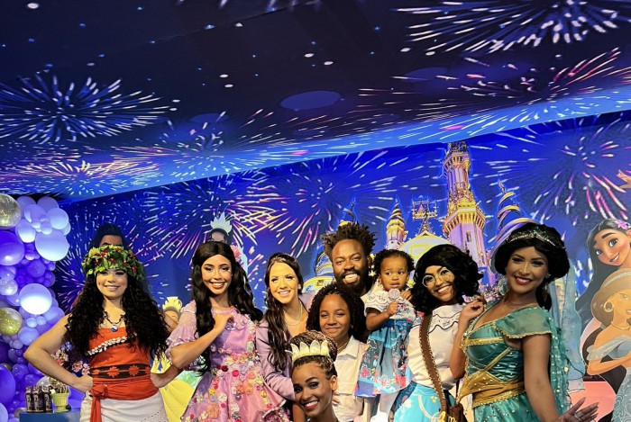 A festa teve como tema as princesas da Disney e personagens como Moana, Jasmine, Maribel Madrigal e Tiana estavam presentes interpretadas por atrizes e fizeram a alegria da criançada.