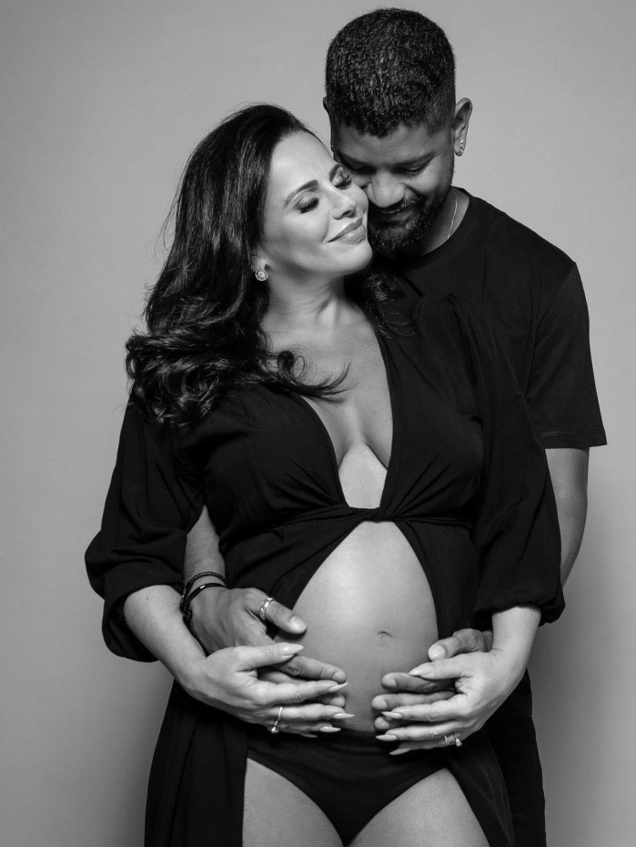 Viviane Araújo exibe corpo em reta final da gravidez ao lado do maridão