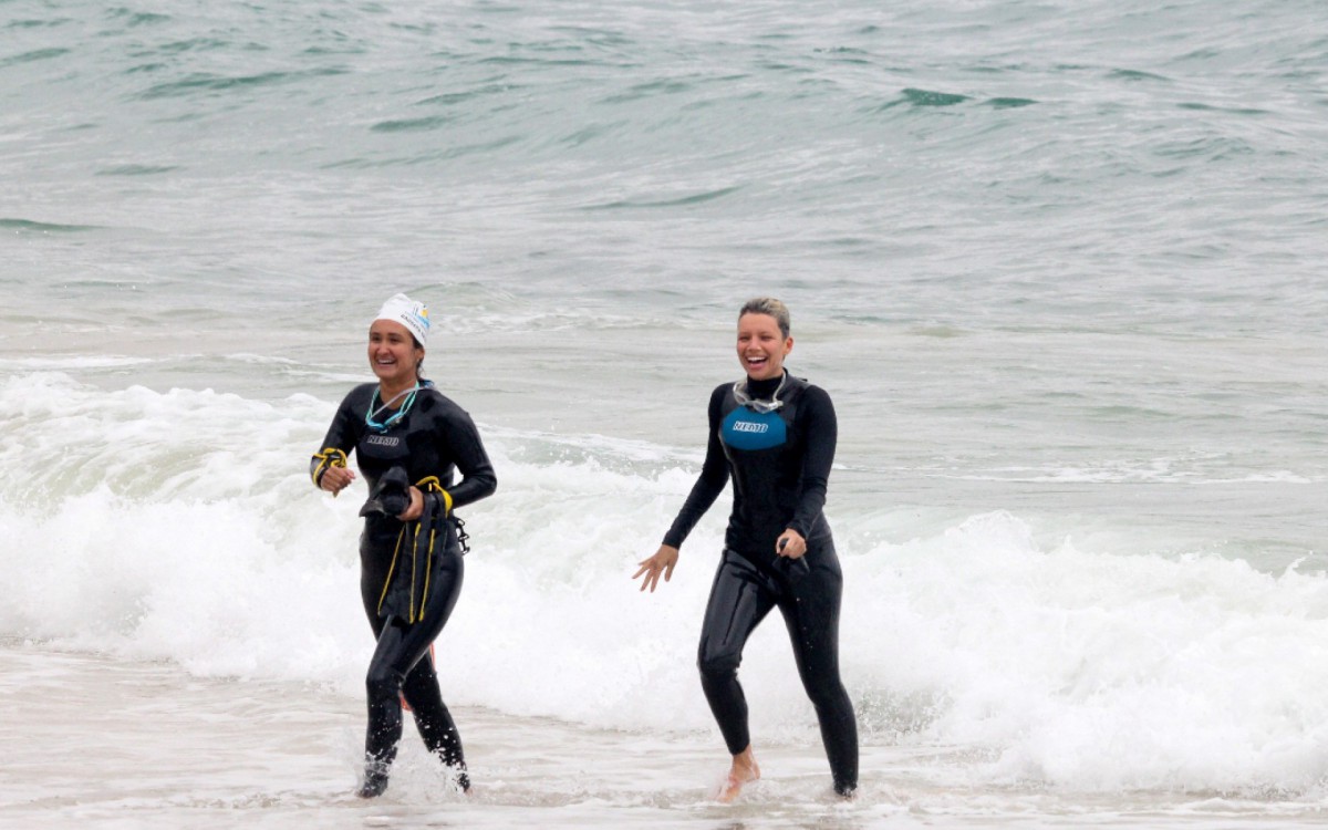 Bruna chegou de bicicleta, trocou de roupa no canto da areia e partiu para o mar, mas o que chamou a atenção dos presentes foi a tranquilidade da artista de exibir os seios ao vestir a roupa de mergulho. Nas fotos, a atriz aparece chegando, se trocando e saindo do mar feliz após mergulhar e realizar sua atividade física, mesmo com a temperatura máxima da cidade chegando a 21ºC.