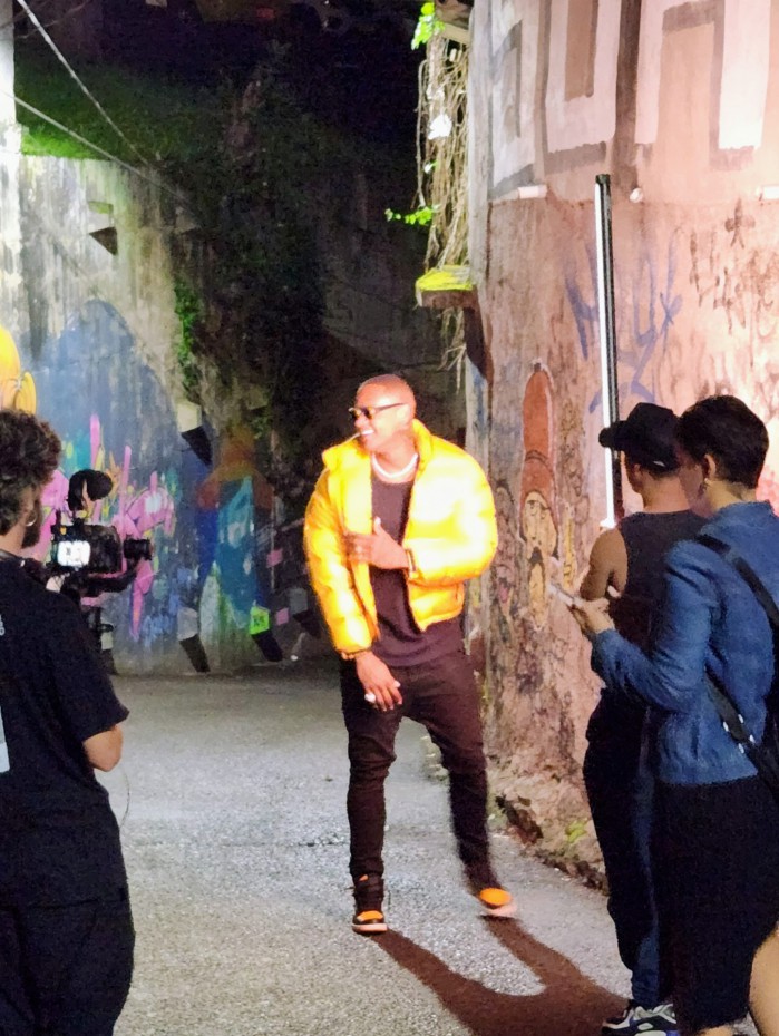 Rio - Leo Santana esteve na comunidade do Vidigal, na Zona Sul do Rio, na madrugada desta terça-feira, para gravar cenas de seu novo clipe "Botada Valendo". Com um look preto e casaco amarelo, o cantor esbanjou estilo durante o trabalho. O marido de Lorena Improta também mostrou muita simpatia e cumprimentou os fãs da comunidade.