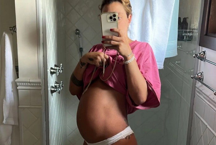 "Oficialmente nove meses", escreveu ela, que acrescentou um emoji sorridente. A foto foi tirada em sua residência em Miami, nos Estados Unidos, onde a influencer está passando o fim da gravidez.