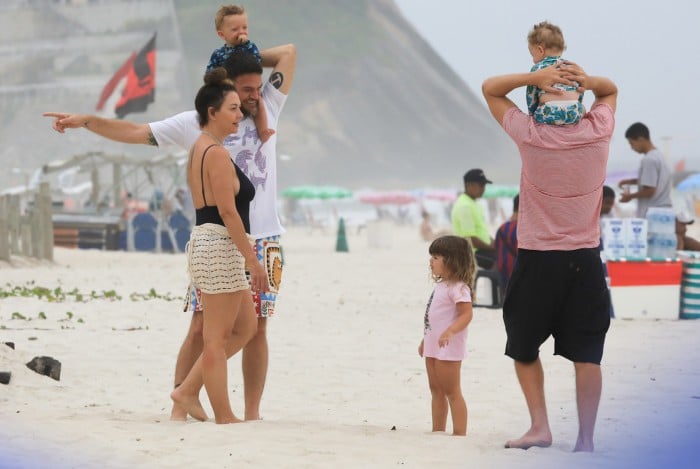 Rio - Emilio Dantas, de 40 anos, e Fabiula Nascimento, de 44, se divertiram com os filhos gêmeos, Roque e Raul, de 10 meses, na praia da Barra da Tijuca, na Zona Oeste do Rio, neste sábado. Apaixonados, os atores trocaram vários carinhos e beijinhos no local. Na ocasião, o casal estava acompanhado de Rafael Vitti e Clara Maria, fruto do relacionamento do ator com Tatá Werneck. Os pequenos esbanjaram fofura e brincaram, enquanto os adultos colocavam o papo em dia.