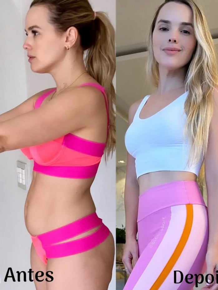 "Esse clique foi de ontem… Antes e depois que me inspira a seguir em frente em busca da minha versão mais saudável", celebrou. "Deu muita diferença, né? Na verdade, não existe milagre, gente. Tenho me cuidado, sim, com alimentação balanceada, saudável (na maioria dos dias) e voltei a malhar há três meses… Essa combinação sempre dá certo! O equilíbrio é o segredo. Para quem não sabe, adquiri 22 kg na última gestação e a saúde ficou um caos. Colesterol, triglicérides, pressão descontrolada etc", contou ela, que também é mãe de Liz, de 3 anos.
