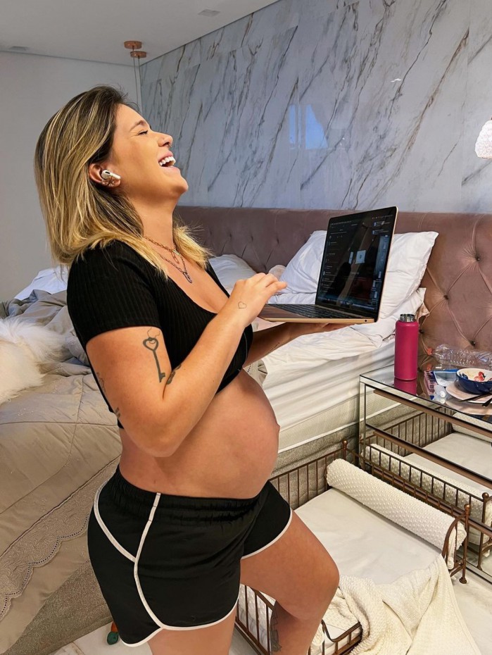 Rio - Viih Tube compartilhou, nesta segunda-feira (30), cliques que fez em casa mostrando o barrigão da gravidez de Lua. A influencer não revelou o mês que dará luz, mas internautas suspeitam que está próximo pelo tamanho que a barriga aparenta nas fotos. Nas fotos, a ex-BBB aparece em sua cama mexendo no computador e brinca com as suas expressões.