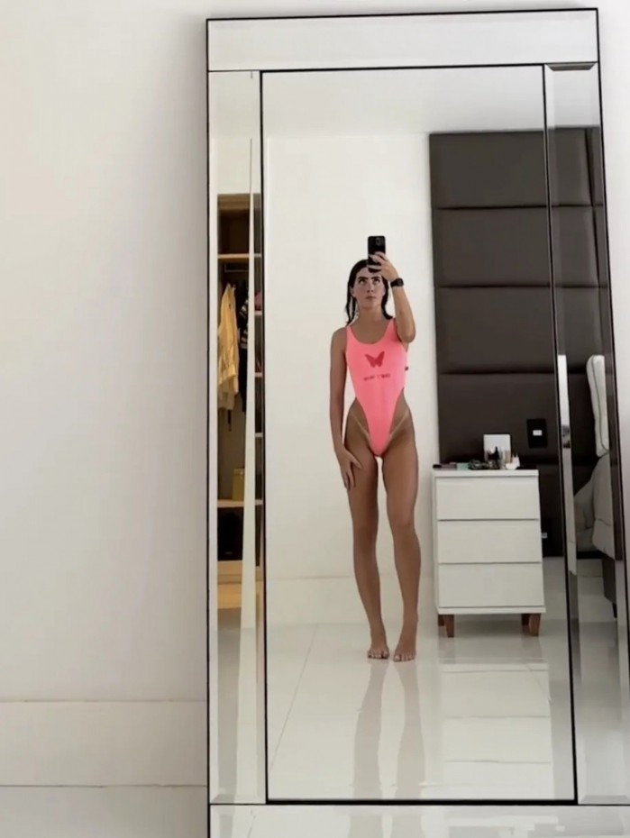 Rio - Jade Picon resolveu sensualizar nas redes sociais na noite desta quarta-feira e postou nos Stories, do Instagram, uma foto em que aparece com um maiô cavadíssimo. Na imagem, é possível ver o bronze da gata, que exibiu uma enorme marquinha de biquíni.