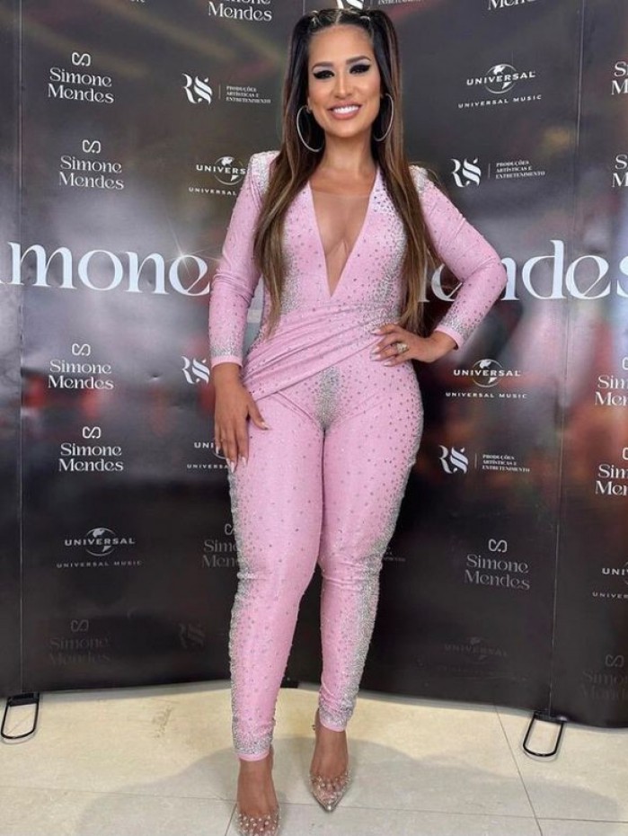 Rio - Simone Mendes, de 38 anos, usou as redes sociais, na segunda-feira, para compartilhar um look usado em sua apresentação no Camarote Villa, na Bahia, e acabou tornando-se alvo de críticas. Na ocasião, a sertaneja foi chamada de hipócrita por vestir um macacão colado ao corpo, com um decote profundo, pois no passado, havia criticado as roupas decotadas usadas por sua irmã, Simaria.