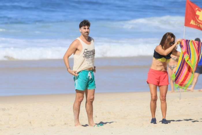 Rio - O ator Reynaldo Gianecchini, de 50 anos, aproveitou a manhã ensolarada desta terça-feira para curtir uma praia. O artista deu um mergulho no mar do Leblon, na Zona Sul do Rio, acompanhado por uma amiga.