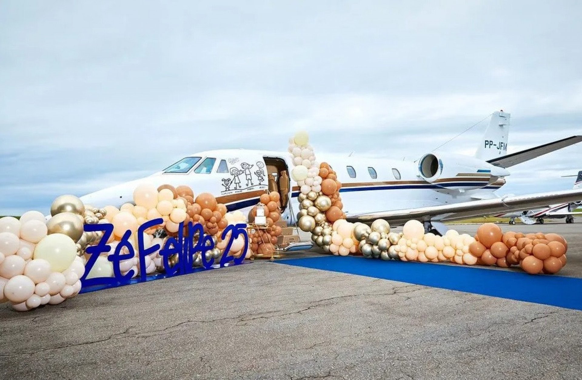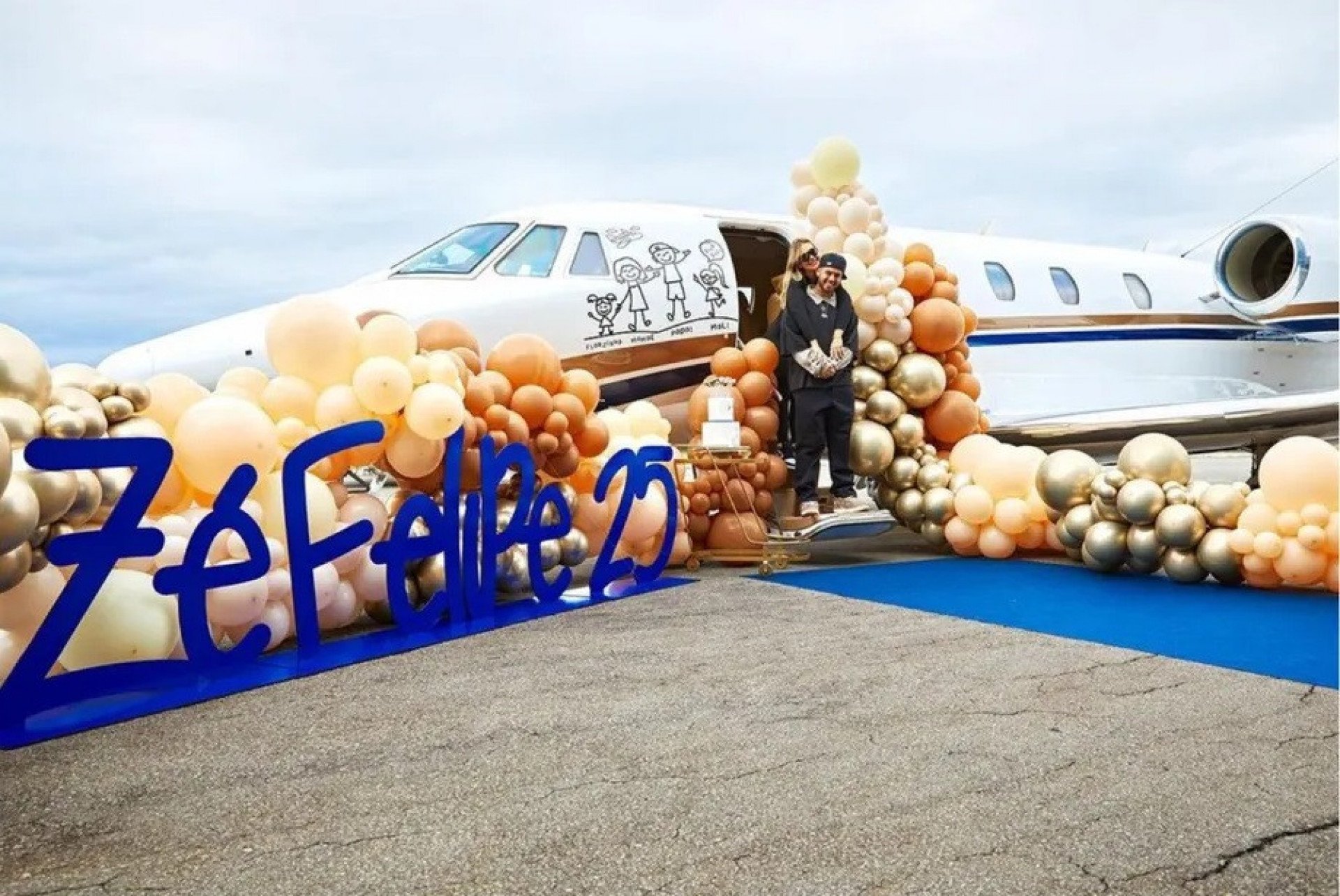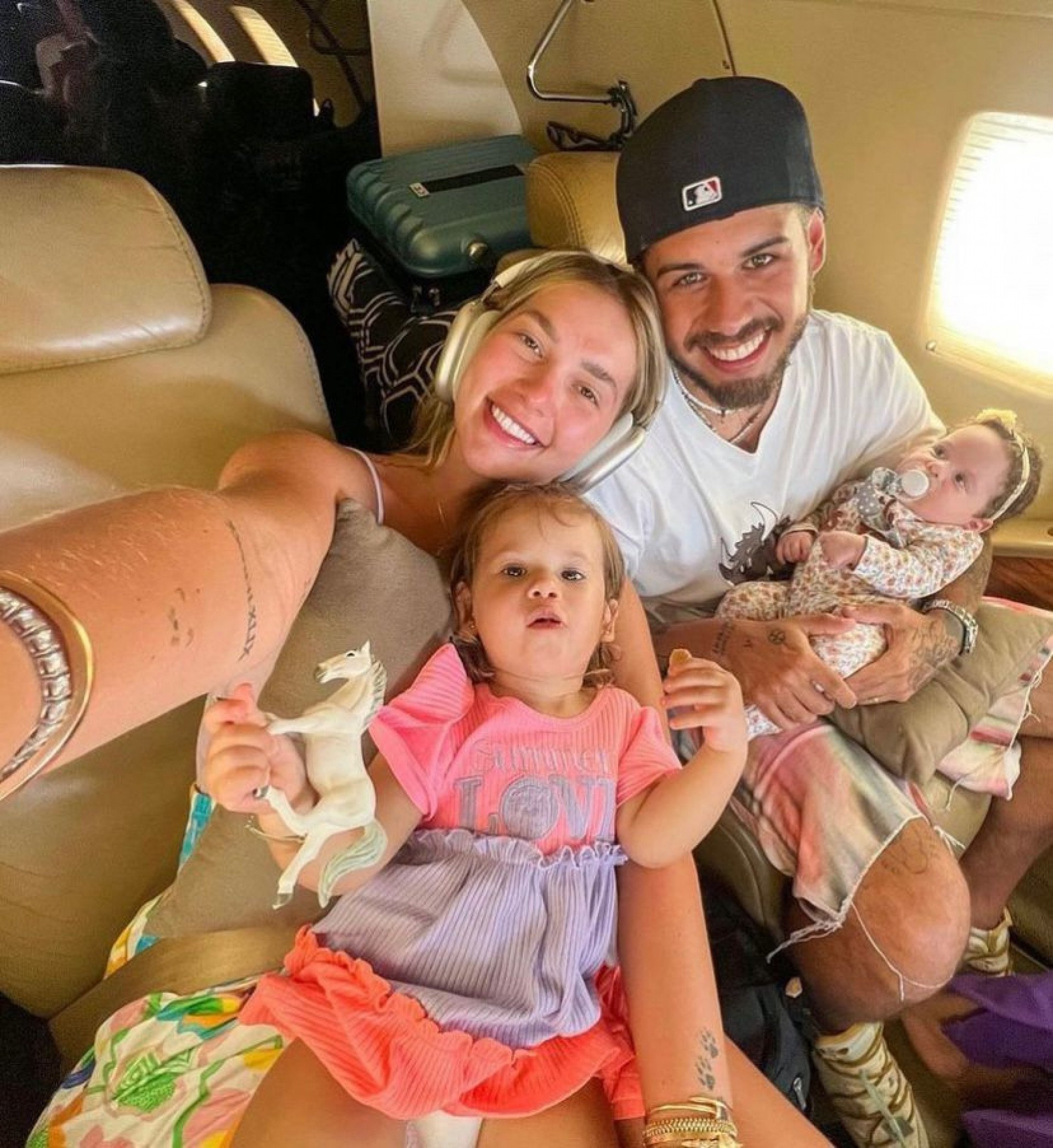 "Ganhei um avião da minha gata! Agora dá para levar a família toda. Te amo demais, meu amor. Esse avião é nosso! Obrigado por tudo que você é, eu te amo e estou com você para tudo. Te amo", declarou o sertanejo.
