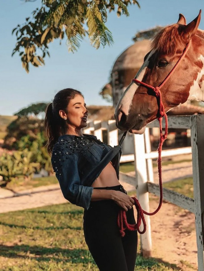 Rio - Paula Fernandes, de 38 anos, usou as redes sociais, nesta segunda-feira, para compartilhar um registro divertido, onde aparece ao lado de um cavalo. Na foto, publicada através do Instagram, a cantora quase tem sua camisa jeans arrancada pelo animal.