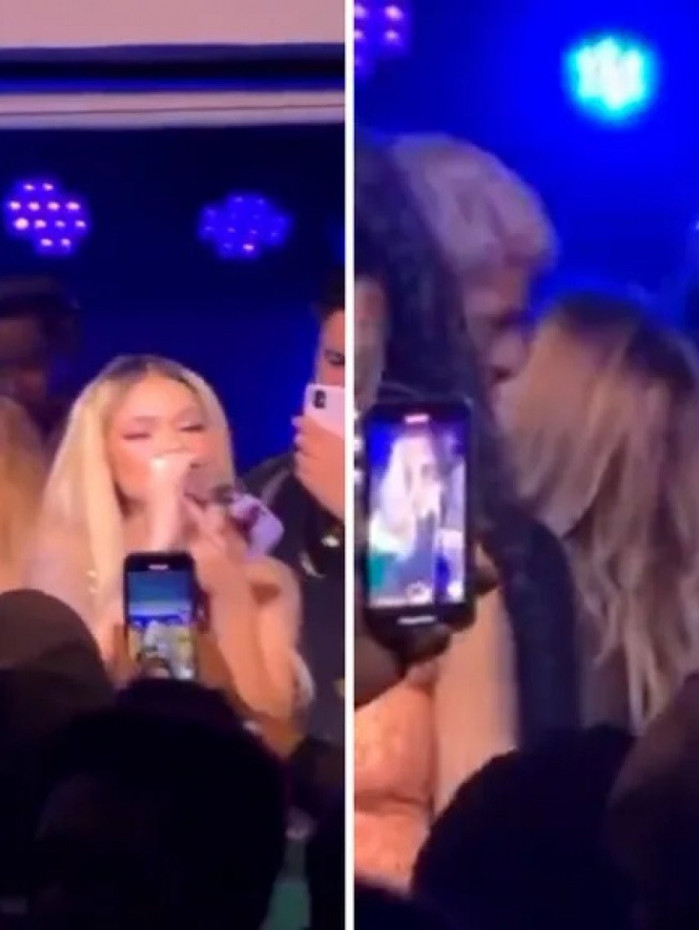 Nas imagens, Bruna e Gabriel estão em cima do palco, bem próximos. Ele se afasta por um momento, Bruna o procura e os dois se beijam. Durante o "BBB 23", Gabriel demonstrou interesse na atriz, mas eles não chegaram a se relacionar no reality show.