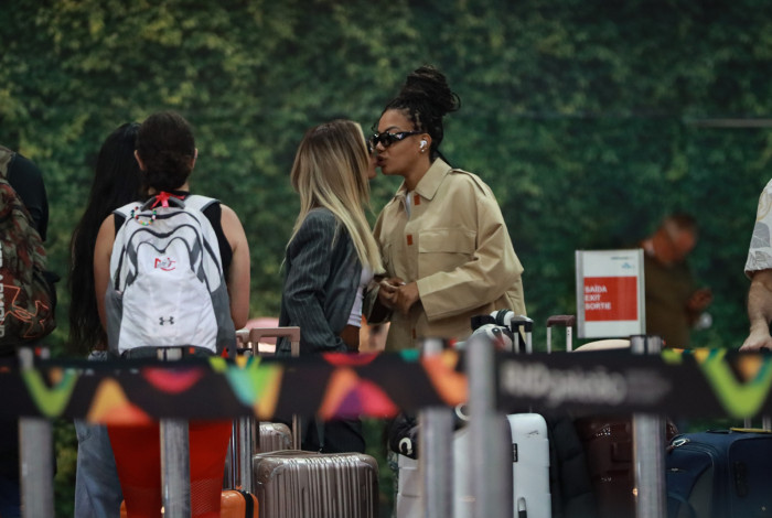 Ludmilla e Brunna Gonçalves trocam beijos em aeroporto do Rio