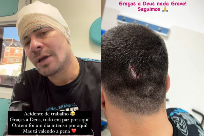 Em outra postagem, Thiago Martins exibiu o ferimento após atendimento médico. "Seis pontos a mais e sete parafusos a menos. Graças a Deus, nada grave. Seguimos", escreveu.