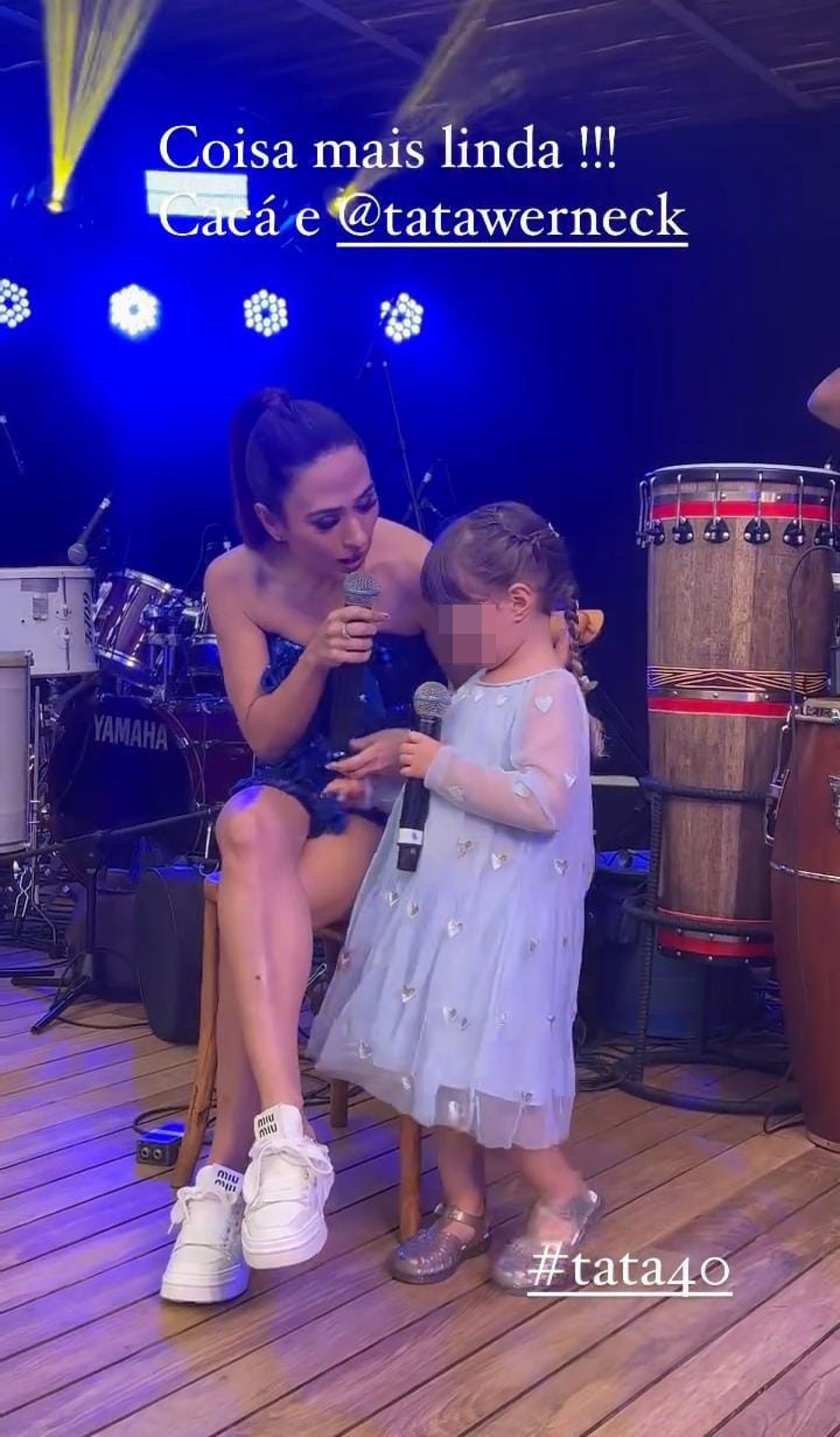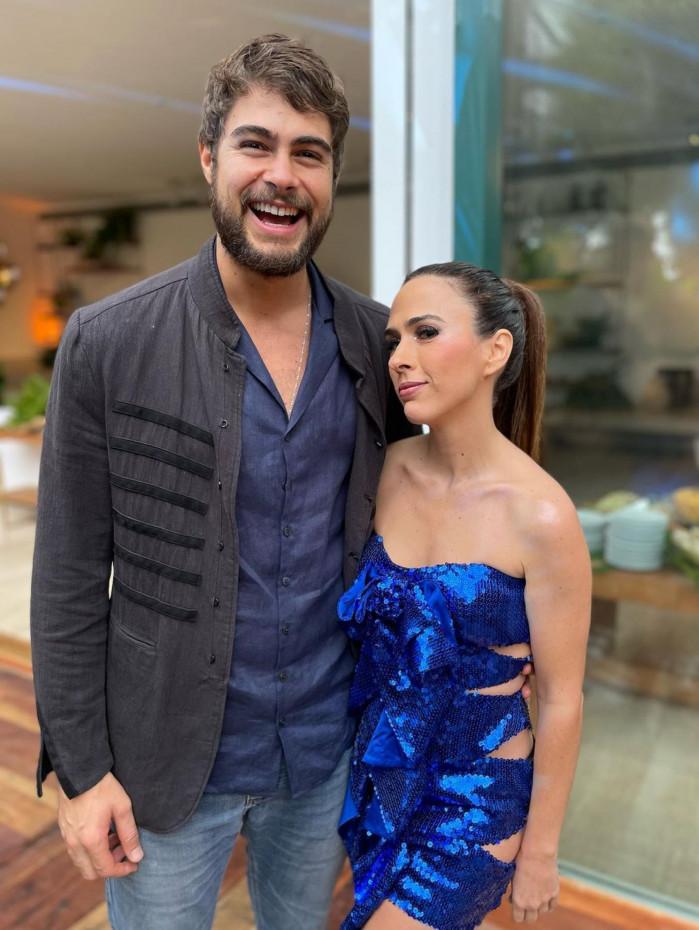 Além das emoções com a parte musical da festa, a atriz se comoveu com uma declaração do marido, Rafael Vitti, que a homenageou com um post simples e cheio de carinho em suas redes. "Te amo, meu mô", escreveu o ator na publicação. Na foto, tirada durante a comemoração, o casal aparece abraçado e sorrindo, Tatá usando um vestido de lantejoulas azuis cheio de recortes e babados, e Rafa vestindo um terno preto com blusa azul-escura e calça jeans.