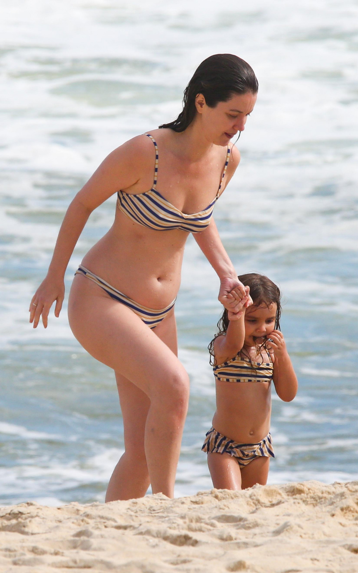 Rio - Nathalia Dill, 38 anos, aproveitou o domingo (24) na Praia de São Conrado, Rio, ao lado do marido, Pedro Curvello, e da filha, Eva, de 3 anos. Em clima descontraído, mãe e filha chamaram atenção ao usar biquínis listrados combinando, nas cores azul, amarelo e branco.