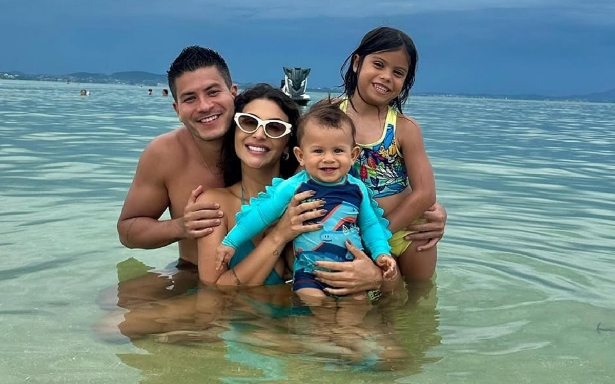 Na última segunda-feira (27), o casal compartilhou registros do passeio nas redes sociais. Nas imagens, Arthur aparece sorridente, aproveitando um dia de praia com a família. "Riqueza maior", diz a legenda da publicação.