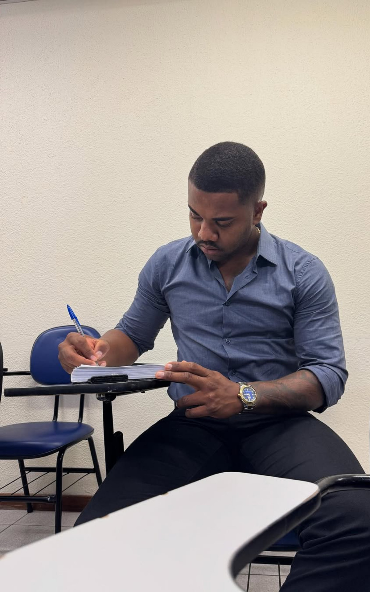 "Não sei nem o que fazia, onde era a minha sala, mas foi legal, gostei. Foi o primeiro contato com a aula e já aprendi algumas coisas sobre direitos trabalhistas. Tem que escolher a área no qual a gente quer trabalhar, eu vou atuar na área criminal porque futuramente posso ser delegado ou ir para a polícia', iniciou ele.
