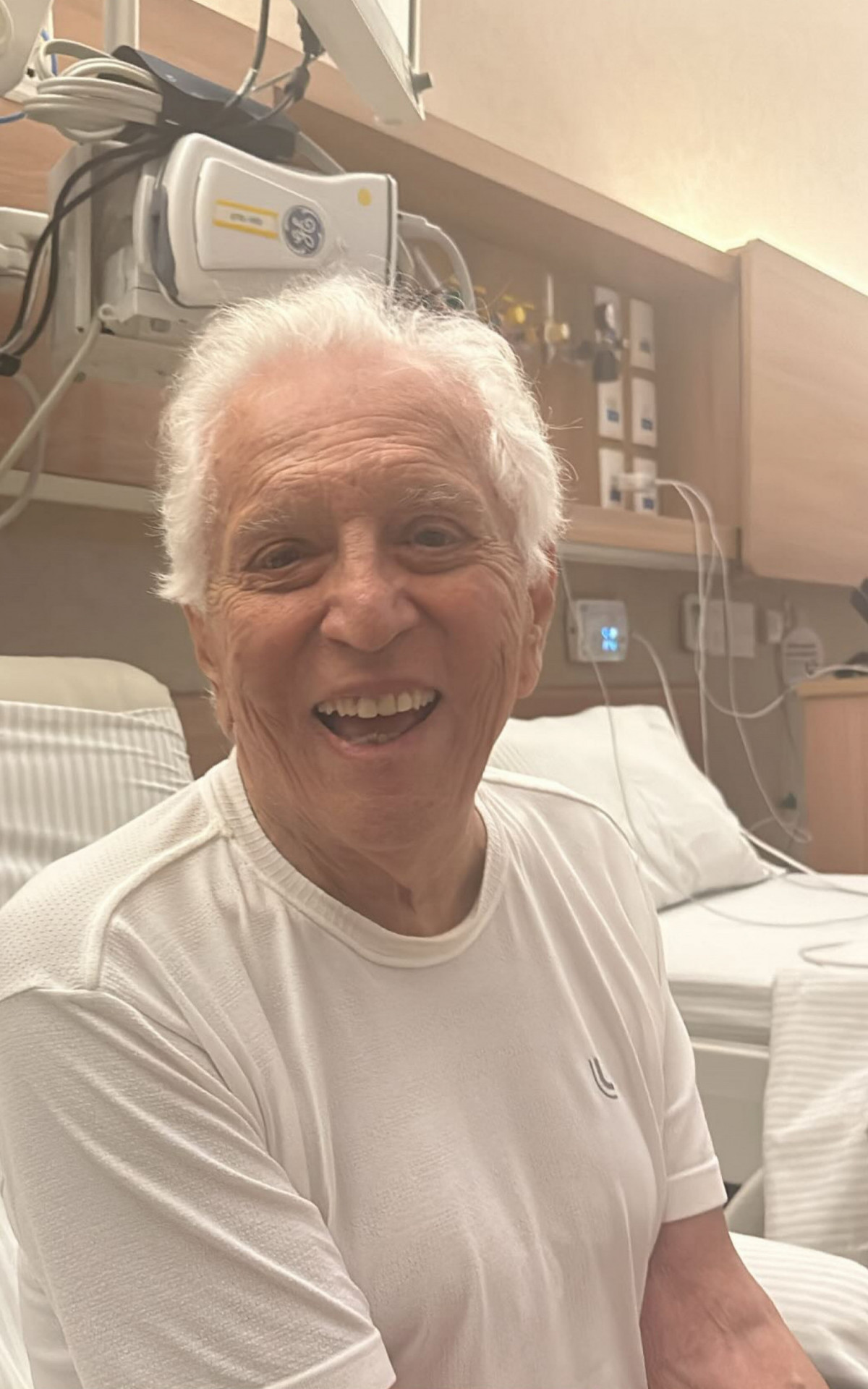 Rio - Internado no Hospital Sírio-Libanês, em São Paulo, Carlos Alberto de Nóbrega, de 88 anos, apareceu sorridente em um clique publicado pela mulher, Renata Nóbrega, no Instagram, nesta quarta-feira (26). A médica ainda tranquilizou os fãs e atualizou o estado de saúde do amado.