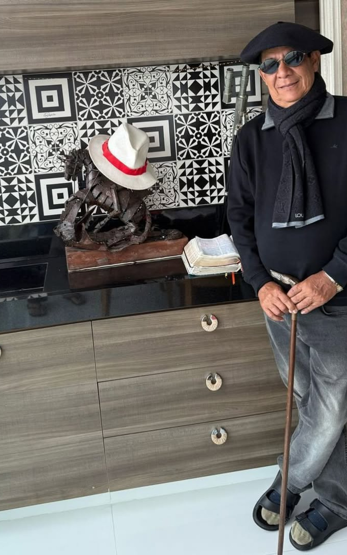 Rio - Em pleno outono carioca, Zeca Pagodinho esbanjou estilo ao atualizar seu look de frio. Desta vez, o cantor de 66 anos apostou em uma calça, blusa de manga comprida, sandália, meia, cachecol, boina, óculos escuros e até uma bengala. O resultado da produção foi exibido em uma publicação feita no Instagram, nesta sexta-feira (26).