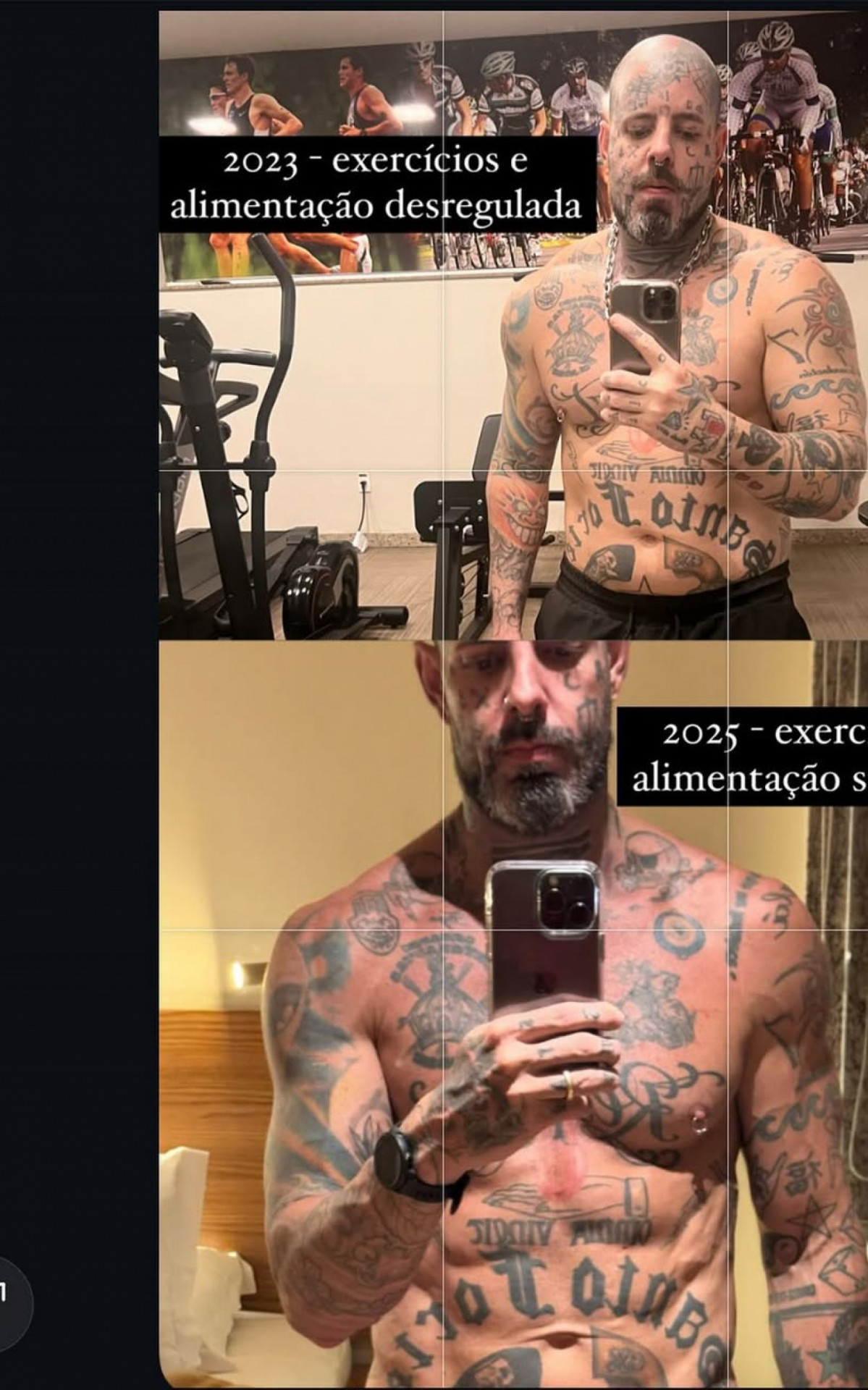 Rio - Tico Santa Cruz, de 47 anos, mostrou a transformação em seu corpo desde que decidiu cuidar da alimentação e da saúde mental. O vocalista da banda Detonautas compartilhou fotos do antes e depois para falar sobre a evolução no físico.
