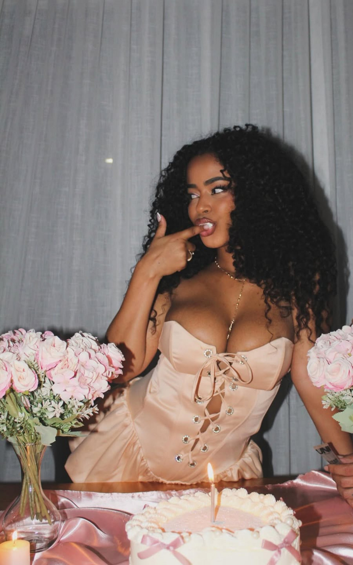 Lorena também compartilhou registros da data nas redes sociais. Em um dos cliques, aparece sorridente ao lado de uma mesa decorada em tons de rosa, com um bolo em formato de coração. "It’s my birthday", escreveu na legenda - "é o meu aniversário", em inglês.