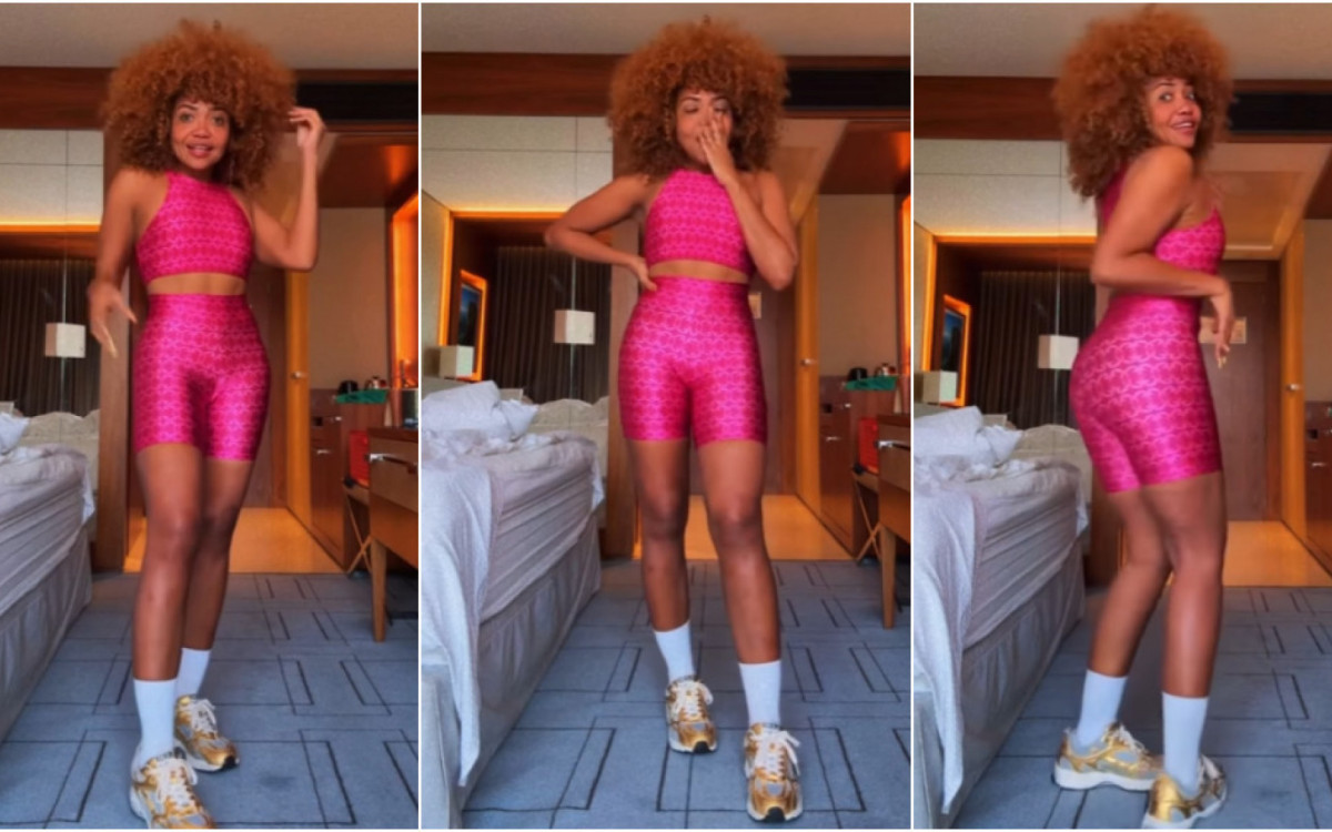 "60 quilos! Sessenta! Eu tô passada, meu Deus! Eu trabalhei muito para chegar aqui. Tô feliz, emocionada. Bermudinha assim, pra malhar, nunca tinha usado", disse ela no vídeo postado nesta quarta-feira (7).