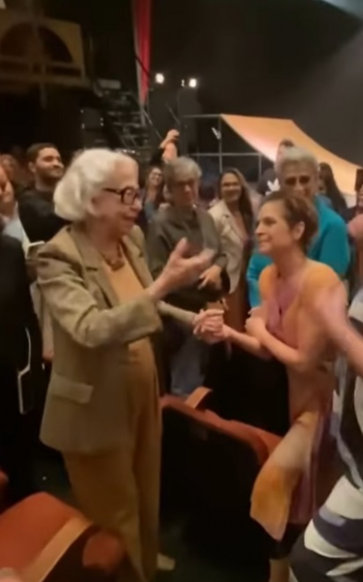 "Maravilhosos atores. O teatro é eterno... Obrigada pela qualidade de atores que vocês são. Eu já estou para 100 anos e a gente tem a continuidade de uma devoção que é a nossa arte.. E aí, a gente vem ao teatro e vê esses dois atores. Muito obrigada", disse Fernanda, emocionada, sendo aplaudida pela plateia.