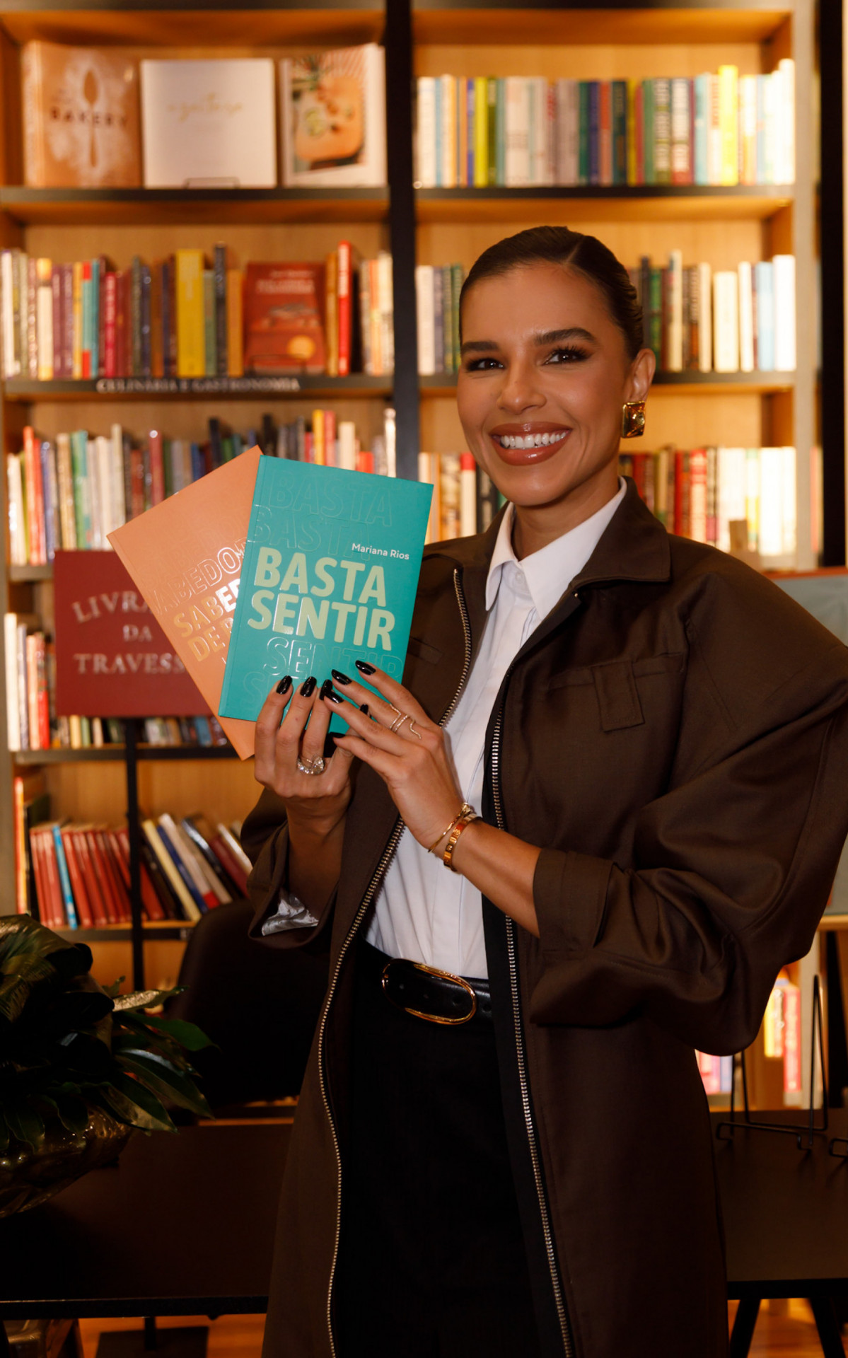 Rio - Mariana Rios, de 39 anos, lançou na terça-feira (27) seus novos livros Basta Sentir e Sabedoria de Bolso em um evento na Livraria da Travessa, no Shopping Iguatemi, em São Paulo. A noite contou com a presença de amigos, familiares e figuras do meio artístico. Durante a celebração, a atriz e cantora autografou exemplares e posou com os convidados. Ela tem usado a literatura como forma de expressão e reflexão sobre sua trajetória pessoal e emocional.