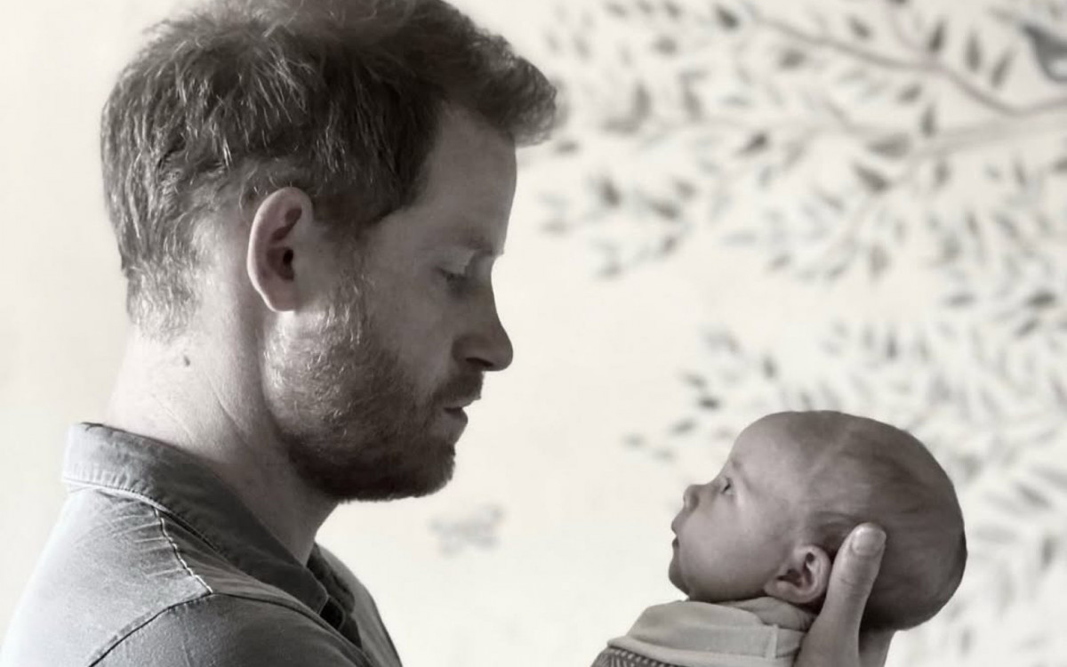 Nas imagens, o príncipe Harry aparece segurando a filha no colo quando ela ainda tinha poucos meses de vida. Em outro registro, com a princesa um pouco mais crescida, os dois caminham descalços, de mãos dadas, por um caminho cercado por várias árvores.