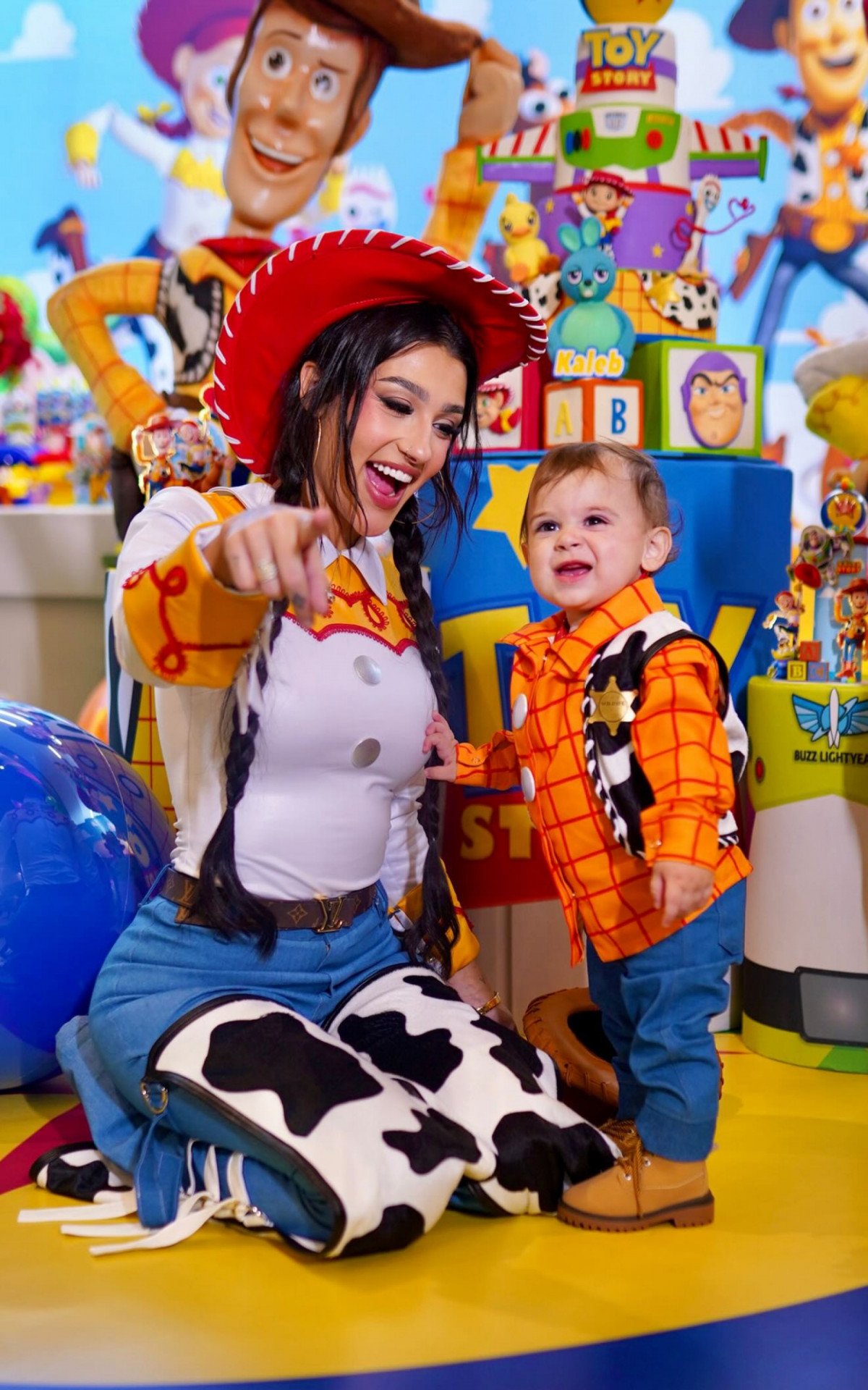 Nas redes sociais, a influenciadora compartilhou imagens do momento especial, que reuniu amigos e familiares. Kaleb apareceu vestido como o personagem Xerife Woody, enquanto Bia escolheu o traje de Jessie, personagem também presente na animação.