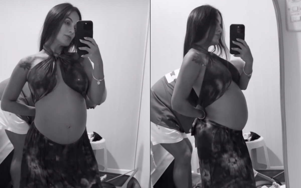 Rio - A influenciadora Carol Peixinho, de 40 anos, exibiu o barrigão de 5 meses nas redes sociais, nesta sexta-feira (6). À espera de Bento, seu primeiro filho com o cantor Thiaguinho, de 42, a ex-BBB compartilhou um registro em família e, em seguida, apareceu fazendo provando um conjunto de roupa em frente ao espelho.