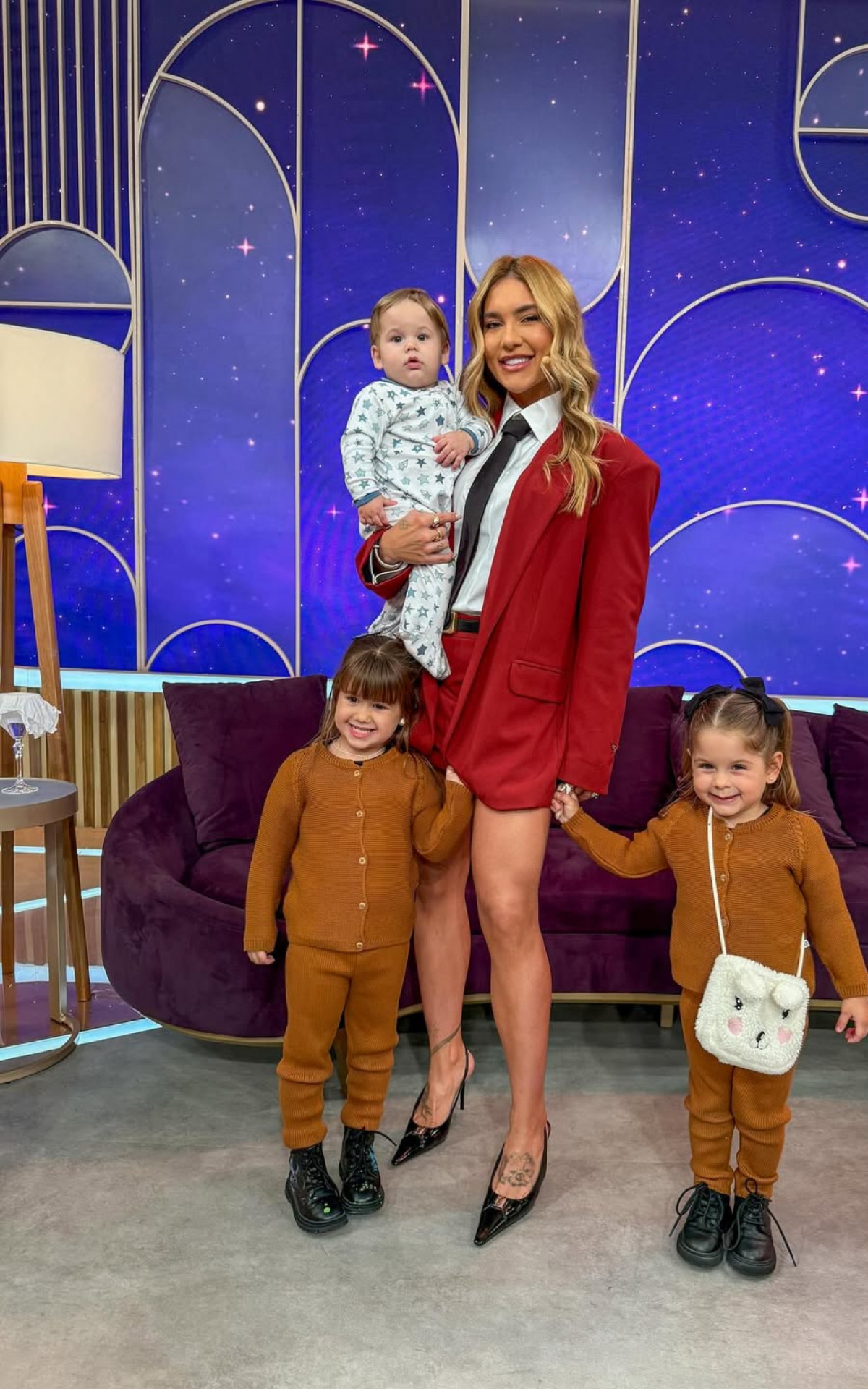 Rio - Virginia Fonseca compartilhou nesta segunda-feira (9) os registros da visita que os filhos Maria Alice, Maria Flor e José Leonardo, fizeram ao estúdio em que ela grava o programa "Sabadou", do SBT, em São Paulo. A influenciadora posou com as crianças no cenário da atração e no estacionamento da emissora.