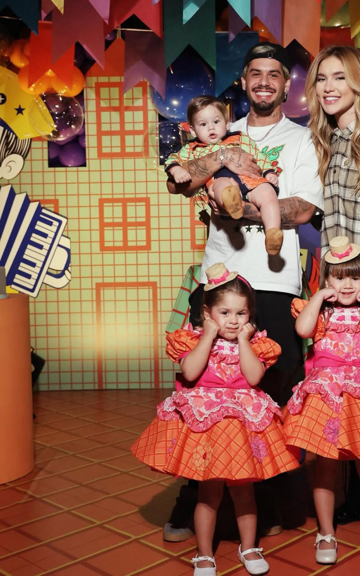 Zé Felipe e Virginia posaram com os filhos na festa de José Leonardo Reprodução/Instagram