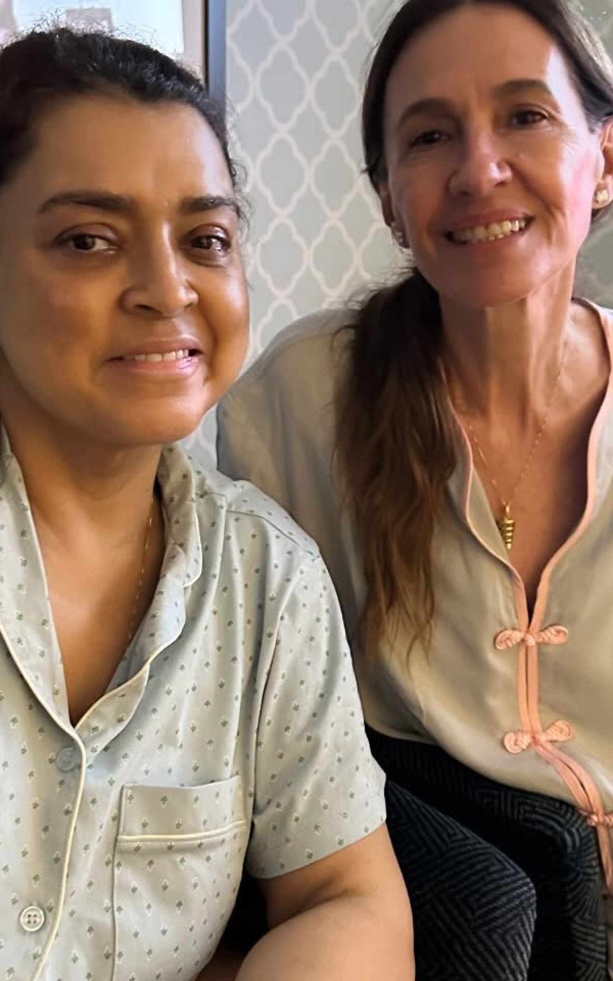 No clique publicado nos Stories, Flora aparece ao lado de Preta, ambas usando pijamas e sorrindo. "Tudo o que eu queria era ficar pertinho dela... as duas de pijama", escreveu a empresária.