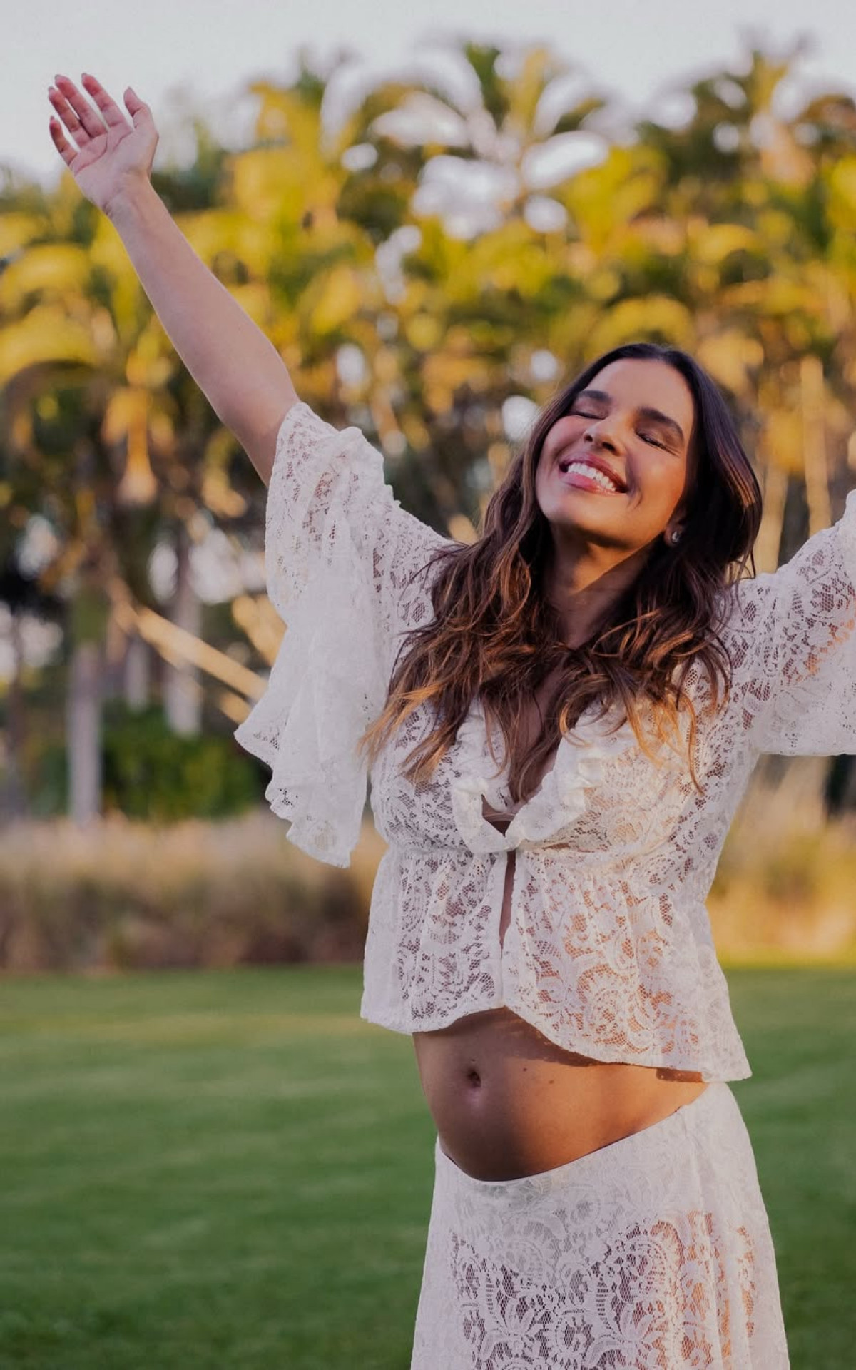 "Eu só queria morar nesses dias!!! Muito obrigada a todos pelas mensagens lindas e amorosas!", escreveu a artista na legenda da postagem. Nos cliques, ela também exibiu a barriguinha e posou com familiares e amigos.