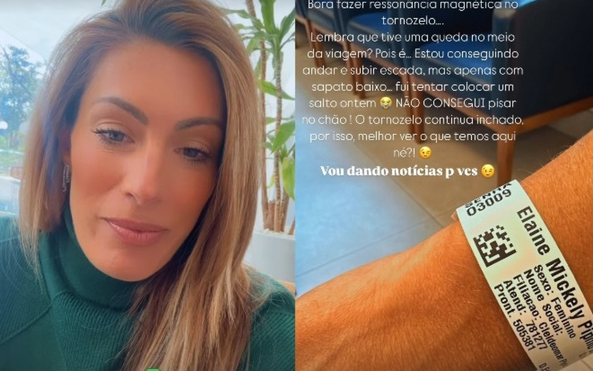 "Lembra que tive uma queda no meio da viagem? Pois é, estou conseguindo andar e subir escada, mas apenas com sapato baixo. Fui tentar colocar um salto ontem e não consegui pisar no chão! O tornozelo continua inchado, por isso, melhor ver o que temos aqui, né?! Vou dando notícias para vocês", escreveu ela nos Stories.