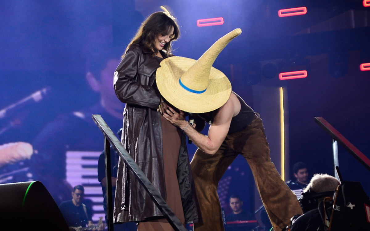 Nattan beija barriga de Rafa Kalimann no palco durante Festa do Peão de Barretos