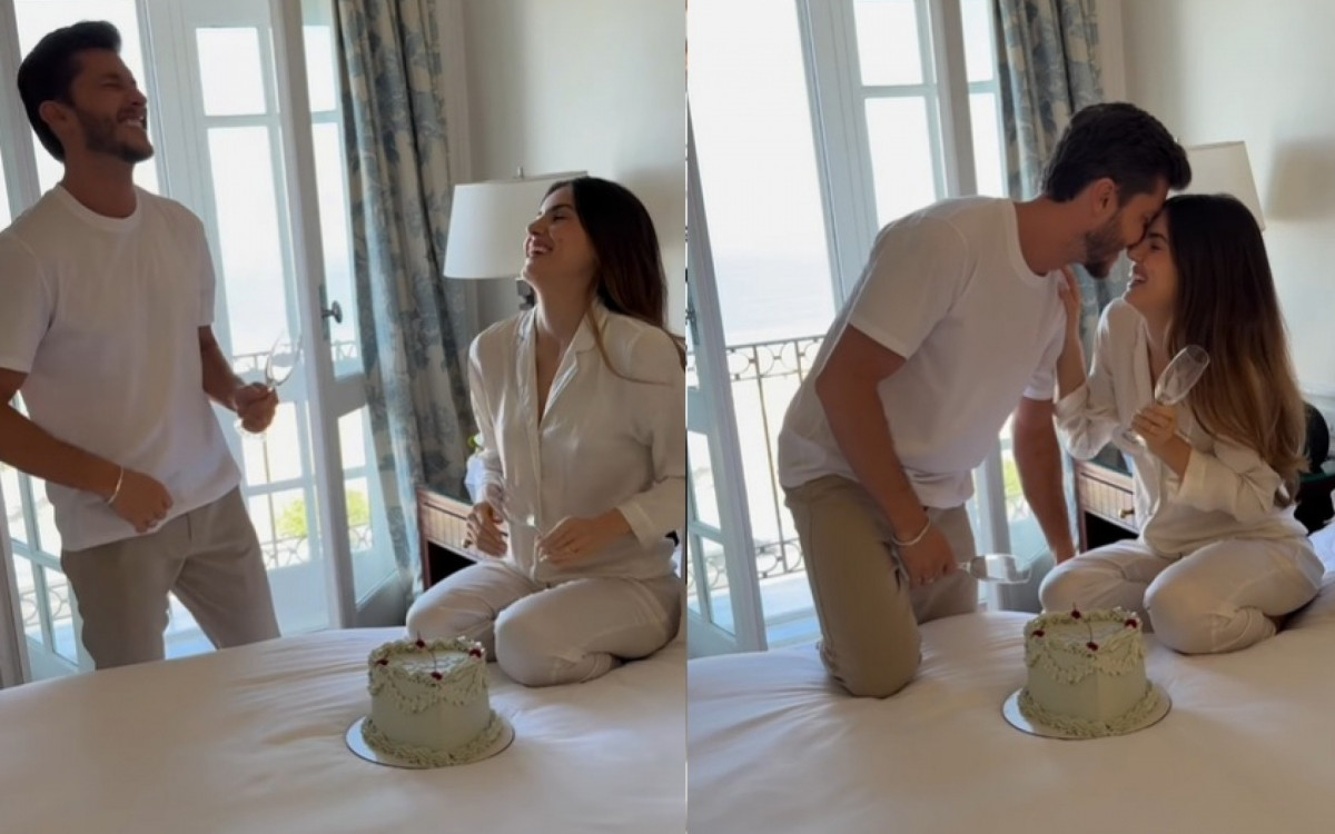Rio - Os atores Camila Queiroz e Klebber Toledo esperam uma menina! O novidade foi revelada através de uma publicação feita no Instagram, nesta segunda-feira (25), dia em que o casal completa 7 anos de casados. Nas imagens, eles aparecem na cama, com um bolo em formato de coração. Ao cortarem a sobremesa com taças, se depararam com a cor rosa, indicando que a bebê é menina. Em seguida, os dois trocam beijos e carinhos.