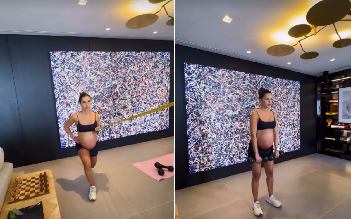 Na reta final da gestação, Mariana Rios exibe barrigão ao se exercitar