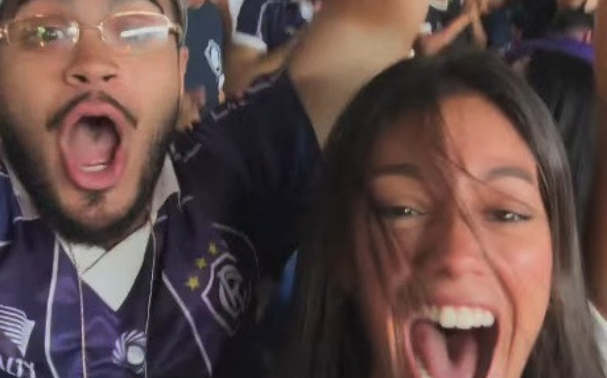 Francisco Gil e Alane Dias em torcida no estádio Olímpico do ParáReprodução/Instagram