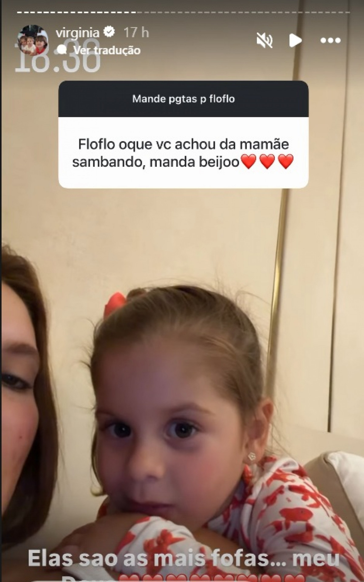 Virginia e Maria Flor com a pergunta do internautaReprodução/Instagram