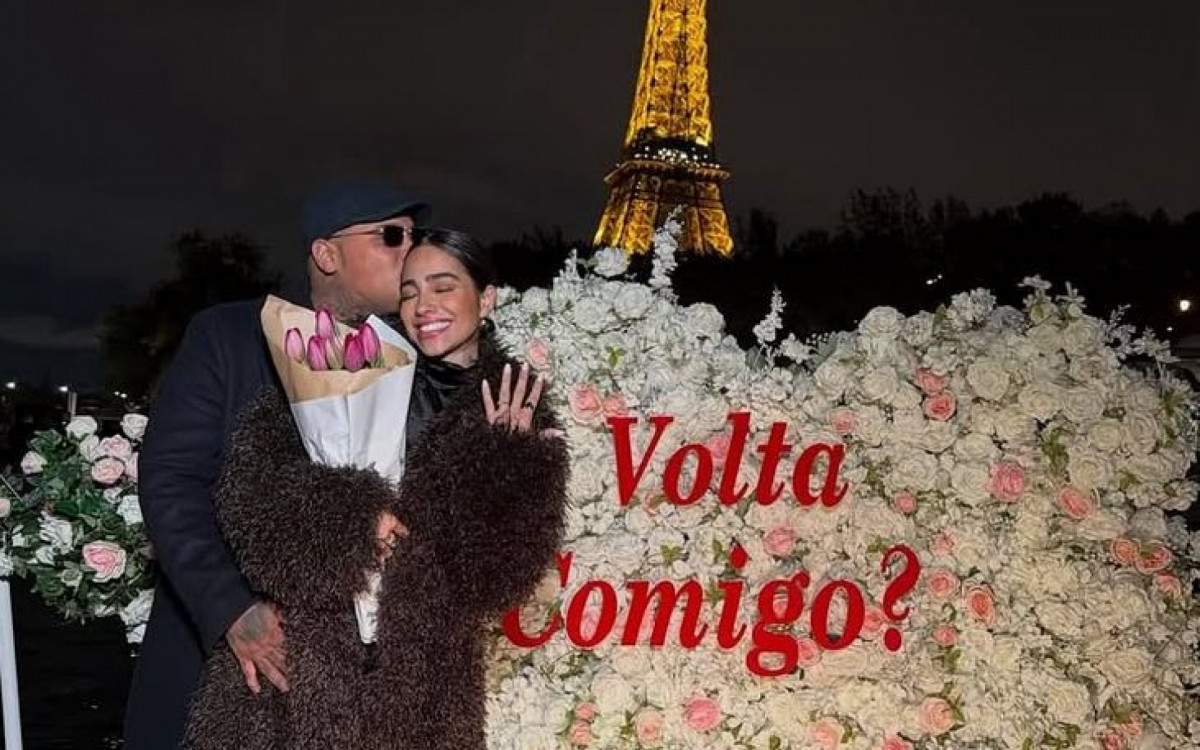 Rio - MC Ryan, 24 anos, e a mulher, Giovanna Roque, 25, surpreenderam os seguidores ao anunciar a reconciliação nesta quarta-feira (22). O pedido de volta aconteceu em frente à Torre Eiffel, em Paris, onde o funkeiro surpreendeu a influenciadora com um buquê de flores, um anel e um ornamento floral com a frase “Volta comigo?”.