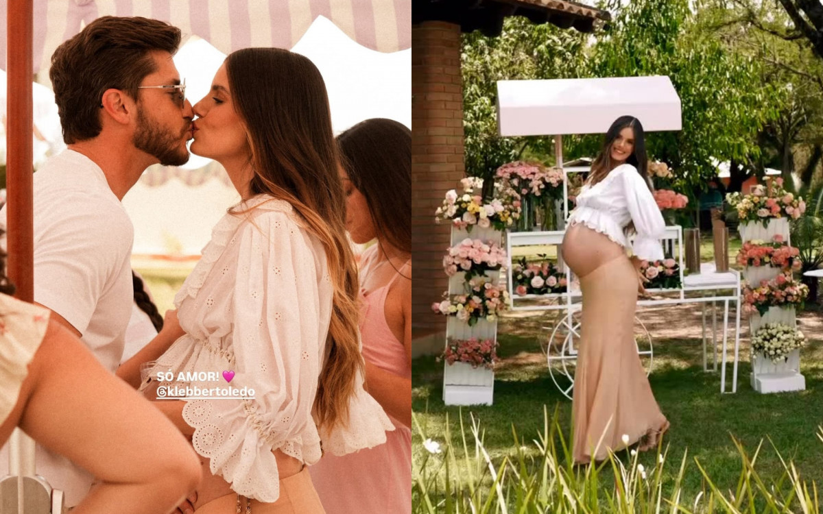 Nas redes sociais, Camila compartilhou alguns registros da celebração e mostrou a barriga já avançada da gravidez. Em uma das imagens, aparece trocando um beijo com o marido, com quem está casada há sete anos.