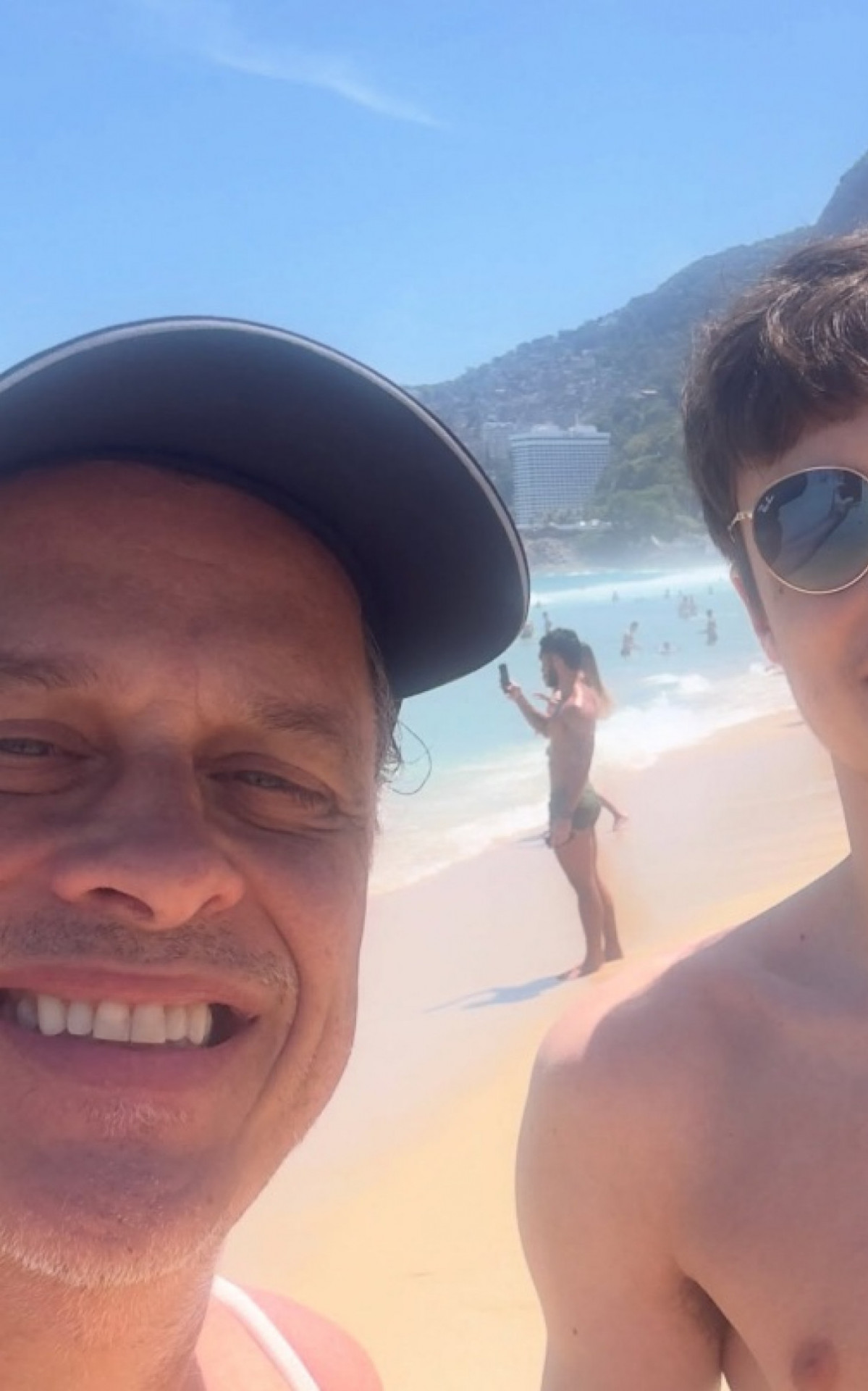Guilherme Fontes curte praia com o filho