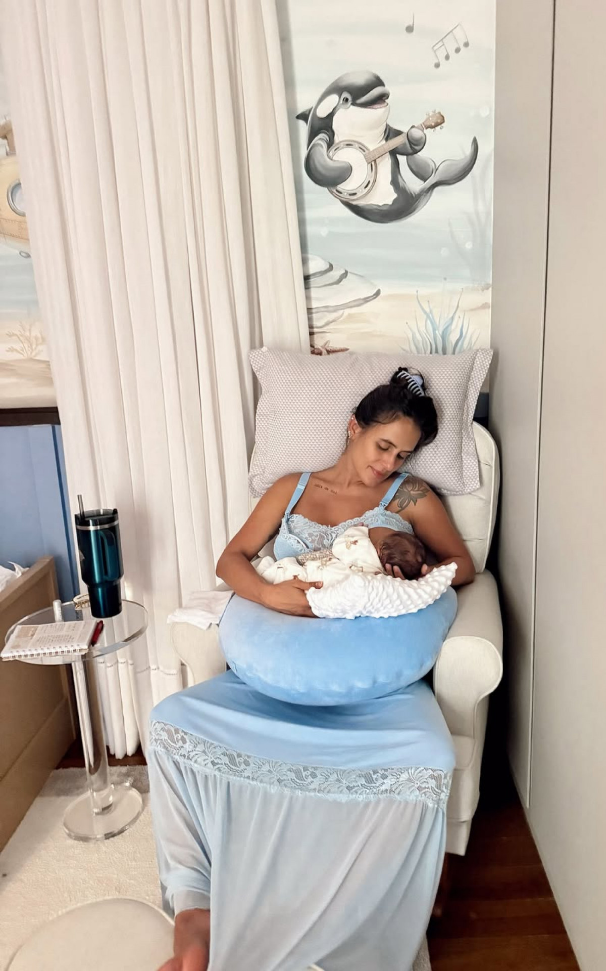 "Tem dias que não apareço aqui, né? É porque é tudo intenso. Uma hora vão se ajeitar os horários. Eu estou vivendo para o Bento apesar de ter ajuda. Livre demanda é o dia inteiro você disponível para o seu bebê. Não consigo ficar longe, não. Mas já a mammy volta à rotina e aos horários. Hoje mesmo, eu tomei café meio-dia. Não é brinquedo, não", relatou nos Stories.