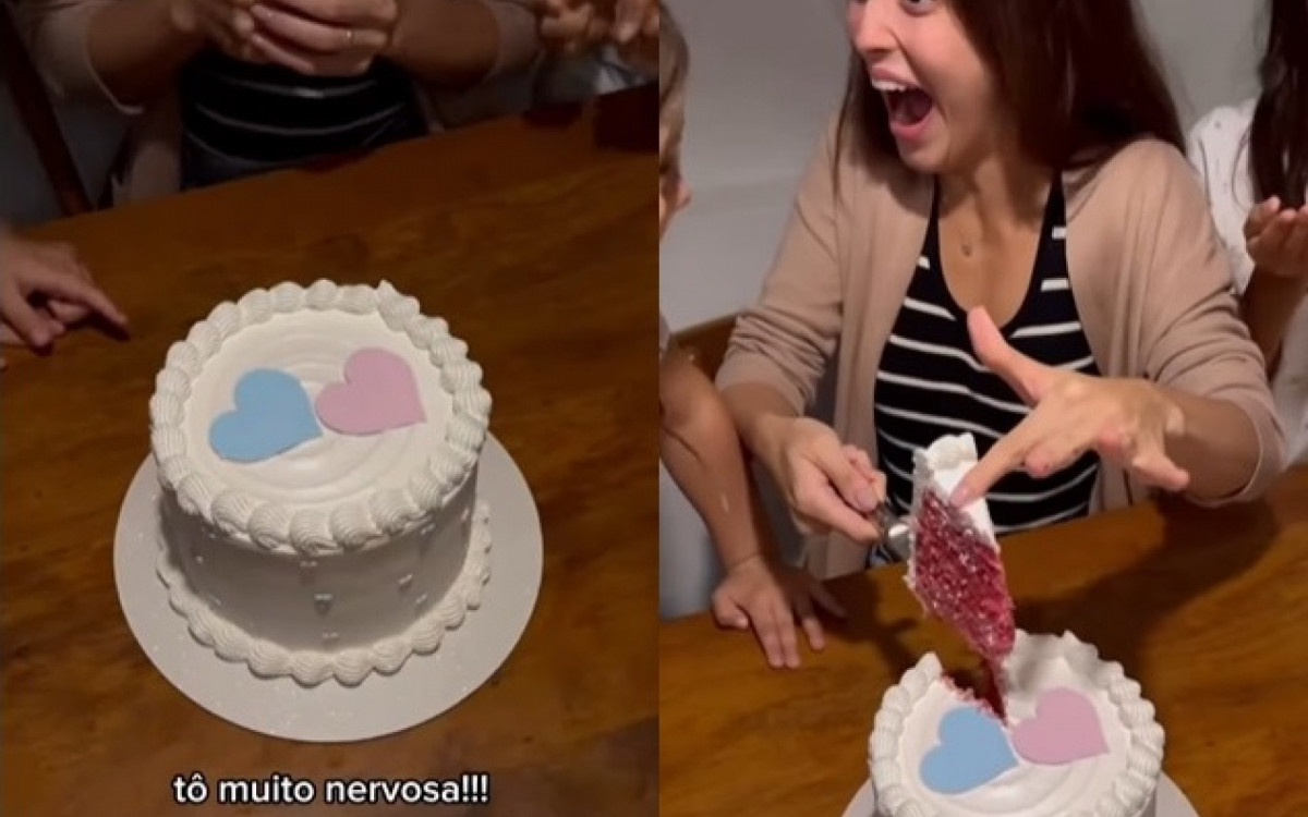 Rio - Letícia Almeida compartilhou um vídeo nas redes sociais neste domingo (2) para contar o sexo do quarto filho. A atriz surgindo cortando uma fatia de bolo decorado com um coração azul e outro rosa, e a cor do recheio revelou que ela espera mais uma menina.